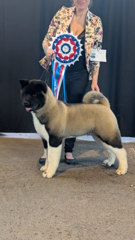 1ere très prometteur Meilleur bébé de la race (BOB baby) Meilleur bébé de l'exposition (BIS Baby) Excellent format pour son age avec de l'os. Belle tete. Petit il. Dos encore souple. Cotes cintrées. Attache de queue. Pelage de bébé. Excellent mouvement. Se déplace bien.